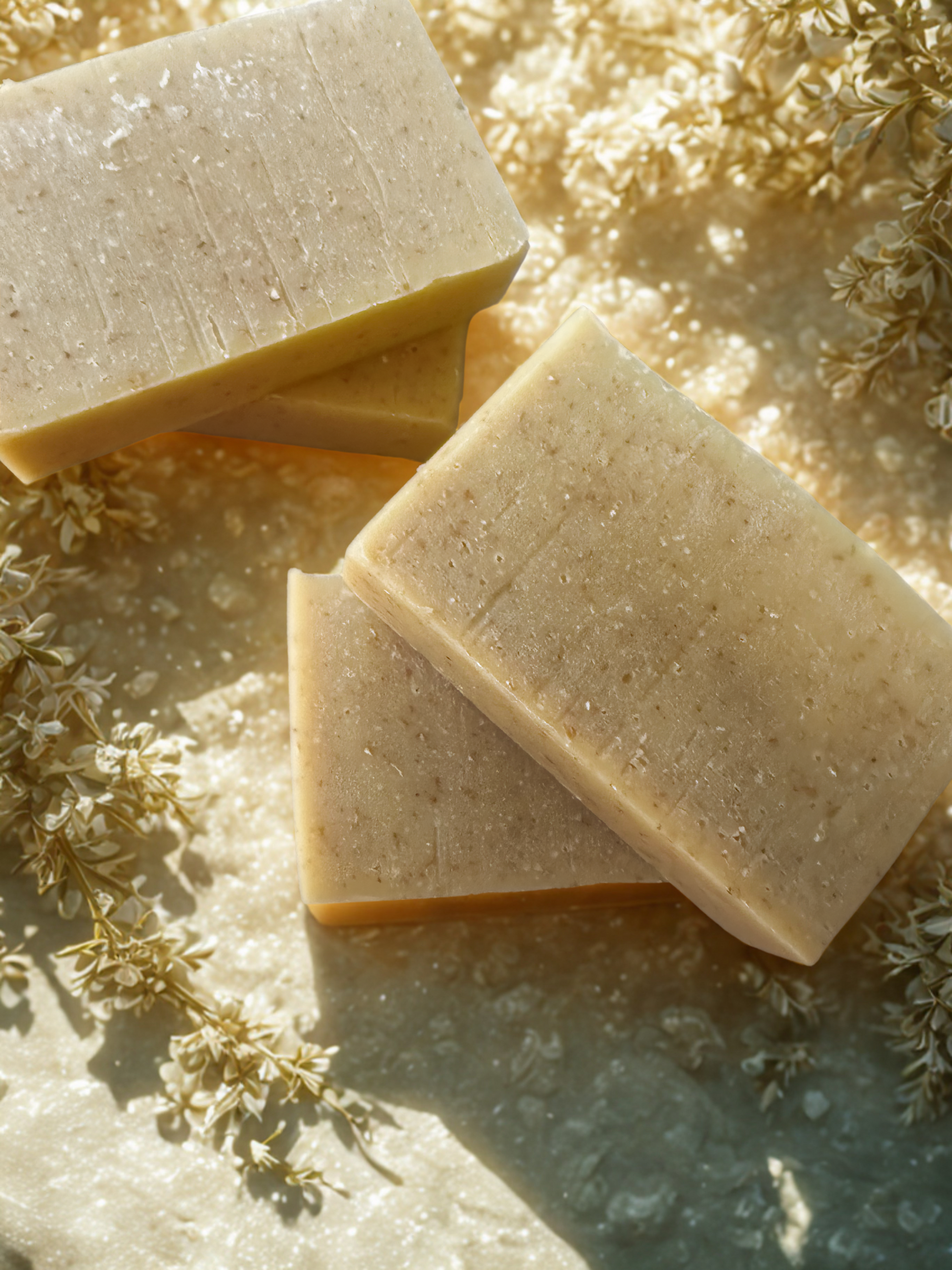 Formulated with soothing goat milk, skin-softening cocoa butter, and a luxurious blend of coconut, olive, hemp, and avocado oils, this little bar delivers deep moisture in every wash. Finely ground oatmeal and gentle goat milk calm and exfoliate, while a subtle oat milk and honey fragrance adds a warm, comforting finish.